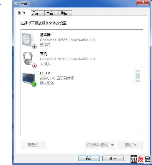神出现了,开机的声音出来了,不是t410s,因为已经禁用了。确实是LG在发出天籁之音。马上进入播放设备,界面如下图: