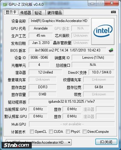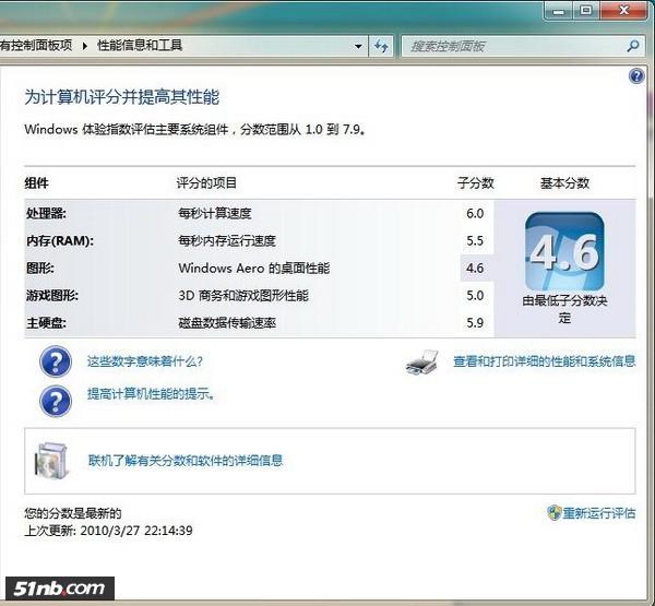 Core i3 330M+Intel GMA HD在WIN7下的评分