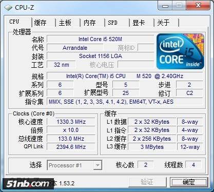 ThinkPad T410s采用拥有32nm制程的英特尔Core i5-520M处理器,拥有2.4GHz主频,最大频率可达2.93GHz;核心方面采用双核四线程设计,拥有512KB二级缓存、3MB三级缓存;另外 酷睿i5-520M集成DDR3内存控制器,速度为1066MHz;集成Intel GMA HD显卡内核频率高达700MHz;设计功耗35W。